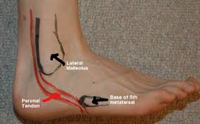 The cuboid bone as seen in the picture is located on the outside part of the foot. The peroneal tendons run along the side of this bone and help to control the outward movement of the foot.